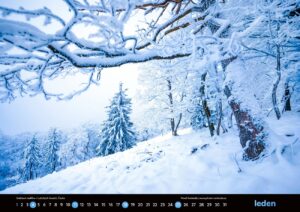 Nástěnný kalendář je ve velikosti A3 (30×42 cm) na šířku, vytištěný na příjemné matné křídě (200 g/m²).